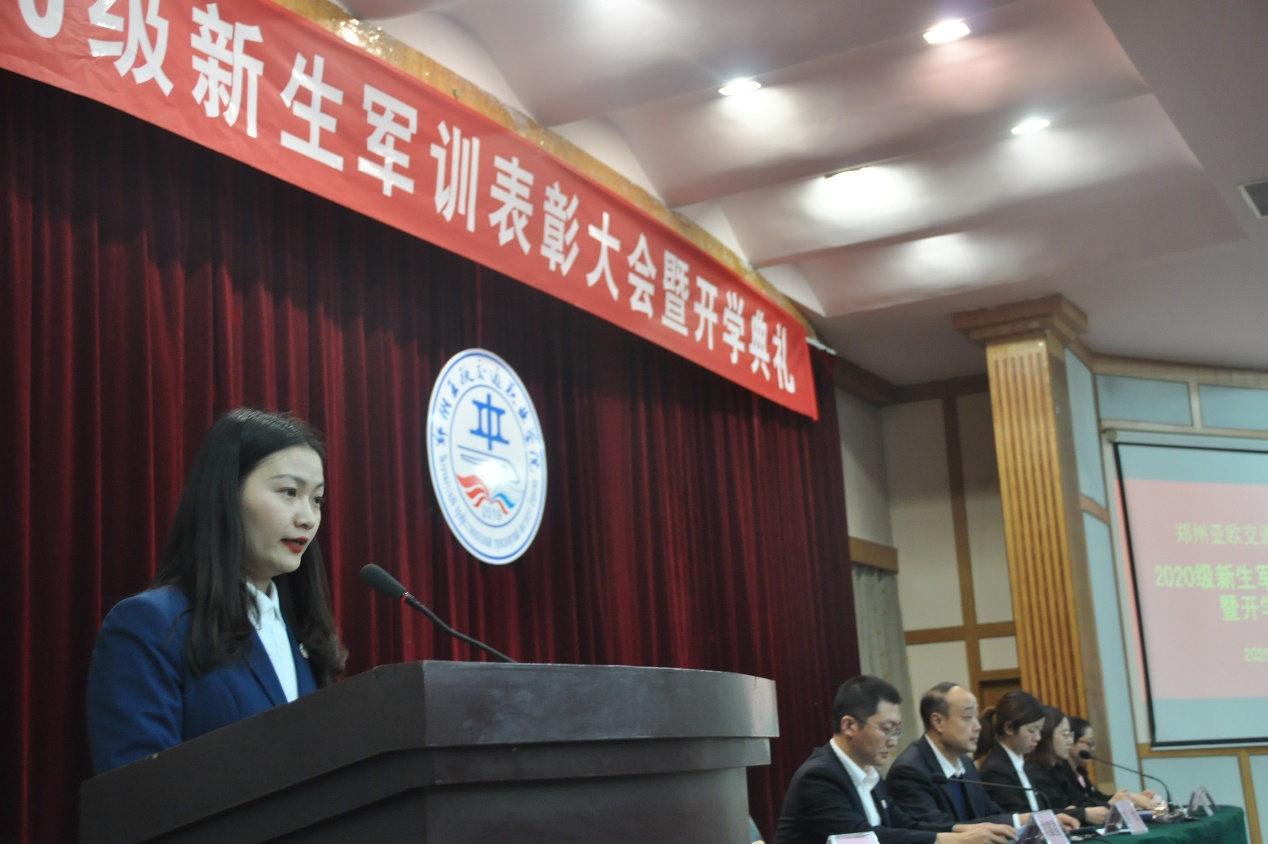 学院筹建办公室主任刘怡同志代表全体师生员工对2020级新生到来表示了热烈的欢迎,并对新生提出三点希望。希望同学们把个人青春梦想融入到河南振兴、富民强省的火热实践中,把个人价值追求融入到实现“两个一百年”奋斗目标的历史征程中,与实现中华民族伟大复兴的中国梦同频共振。希望同学们勤奋学习,努力实践,打好知识基础,学好技术技能,淬炼精益求精、追求卓越的工匠精神,把真本领作为受用一生的财富。希望同学们在老师的引领教导下,能够坚定理想信念,坚信职业教育大有可为,弘扬“人人皆可成才、人人尽展其才”,劳动光荣、技能宝贵、创造伟大的时代风尚,为自身的全面发展和终身发展奠定坚实的基础。