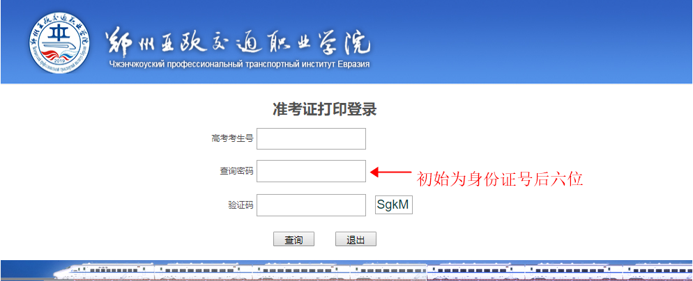 3.点击“准考证打印”,用户名为准考证号(高考考生号),初始密码为身份证后六位。
