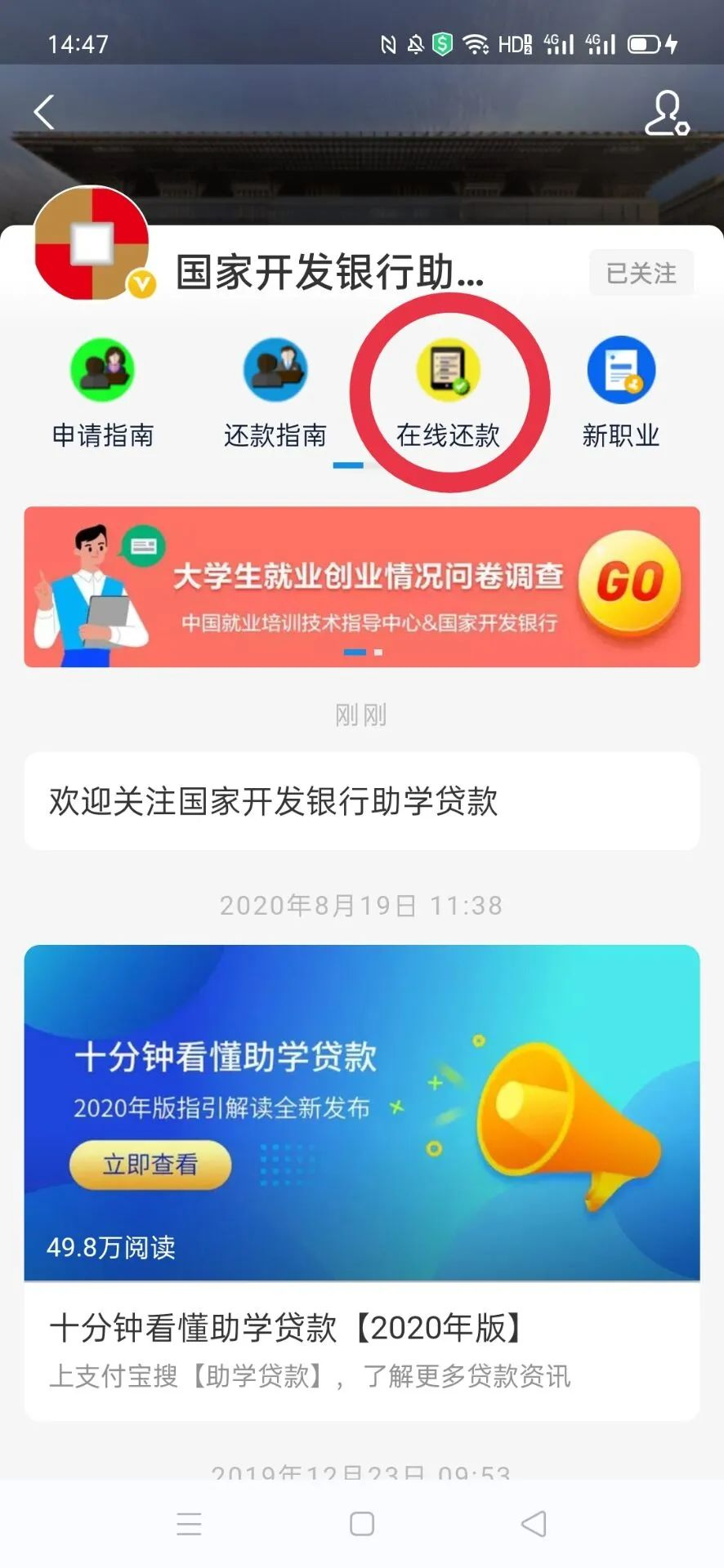 6.进入国家开发银行助学贷款界面,点击【在线还款】