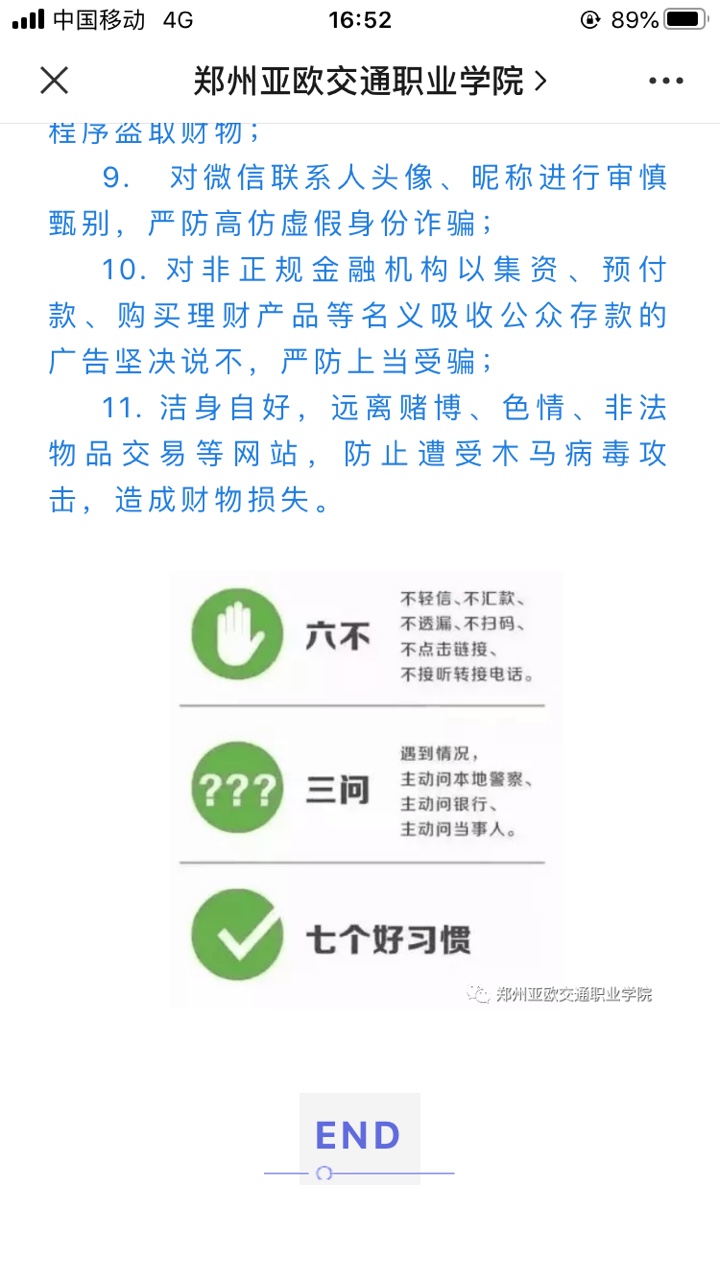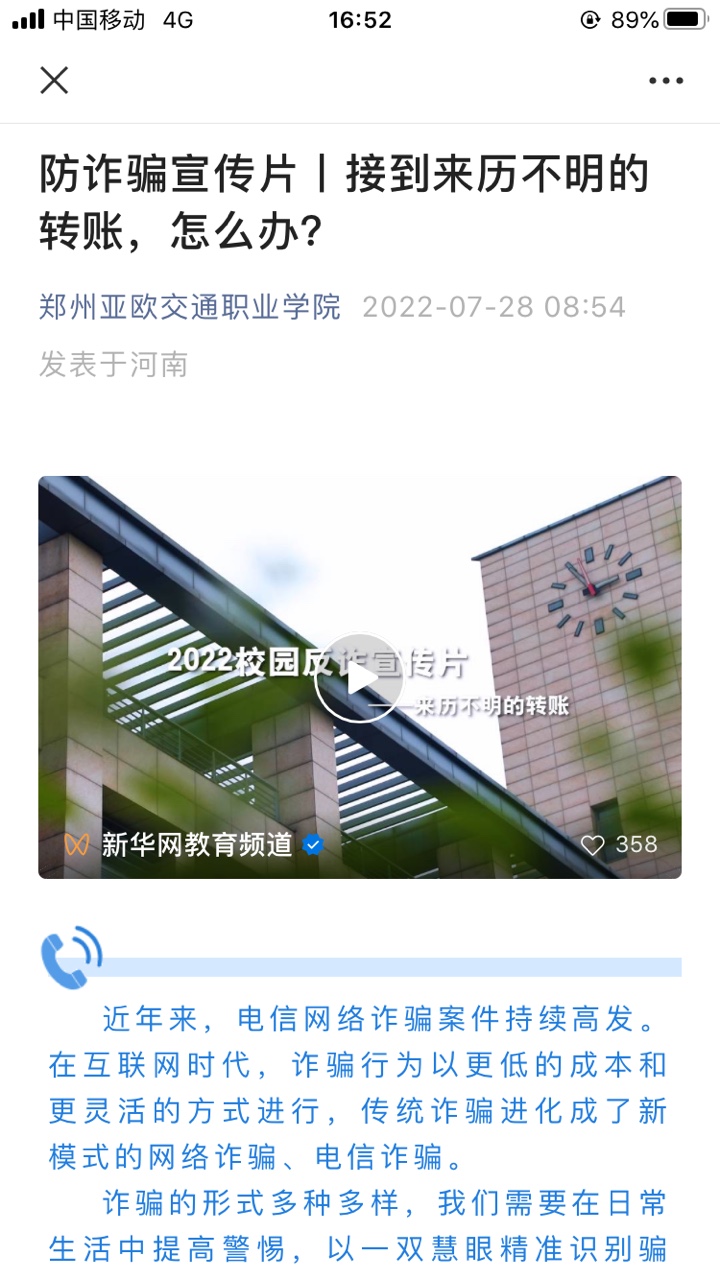 同时,组织学生观看国家反诈中心推出的“全民反诈在行动”系列视频;在学校公众号上开展“反诈小课堂”指南,普及征信知识、金融知识普及教育,普及预防金融诈骗、电信诈骗和违法高利贷等方面的知识。